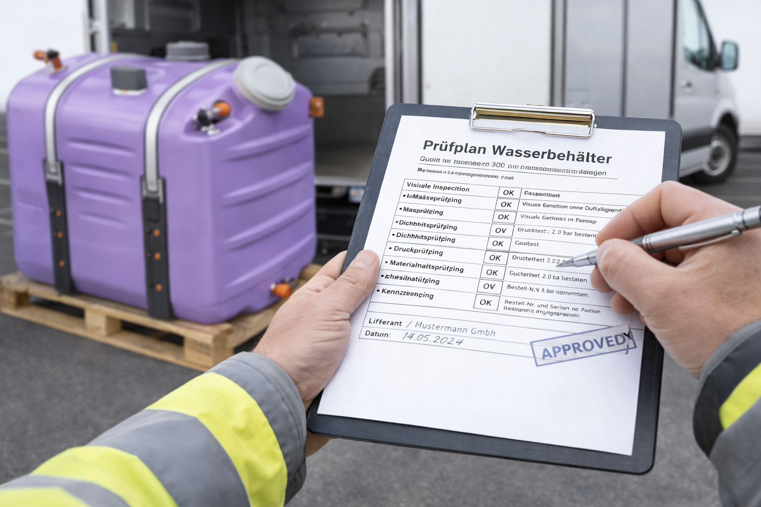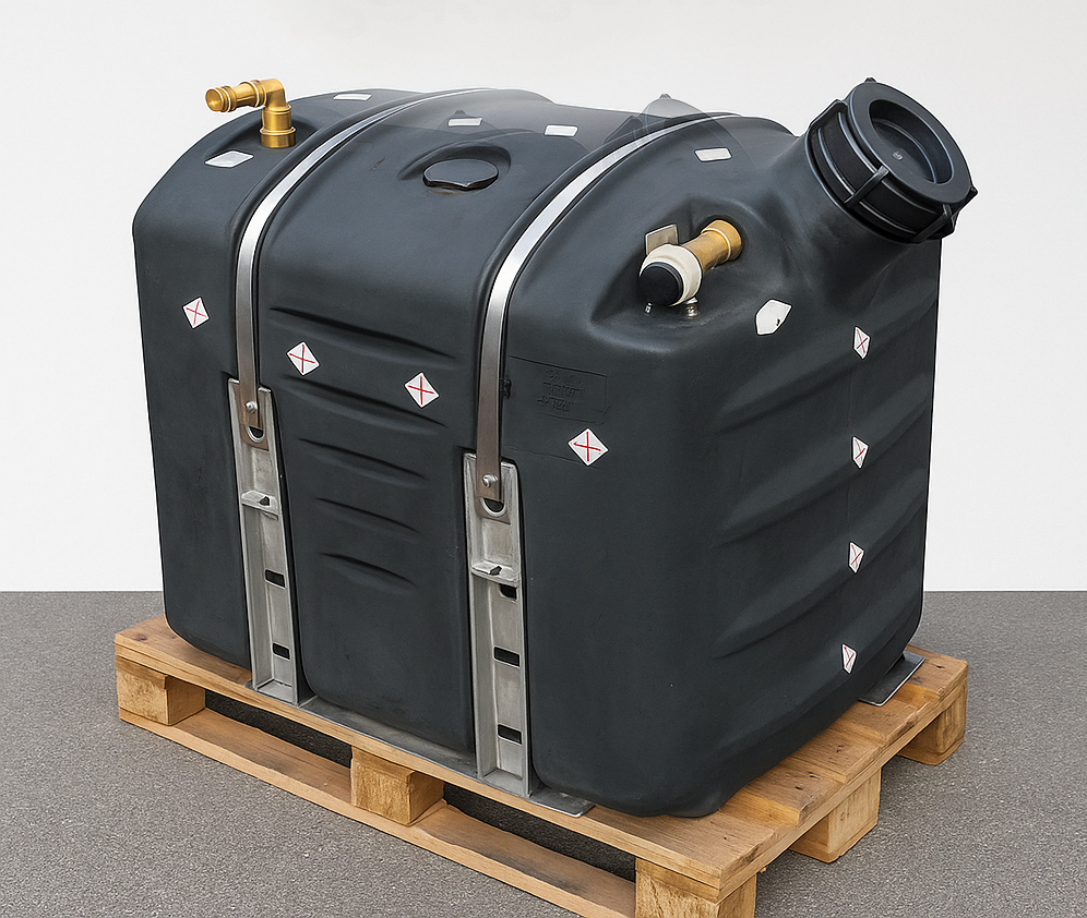 Ein typisches Beispiel ist ein Wasserbehälter mit ca. 300 Liter Volumen, dessen Grundkörper im Rotationsformverfahren hergestellt wird. Dieses Verfahren ermöglicht eine gleichmäßige Wanddickenverteilung, hohe Robustheit sowie eine nahtlose Grundstruktur ohne innere Spannungen.