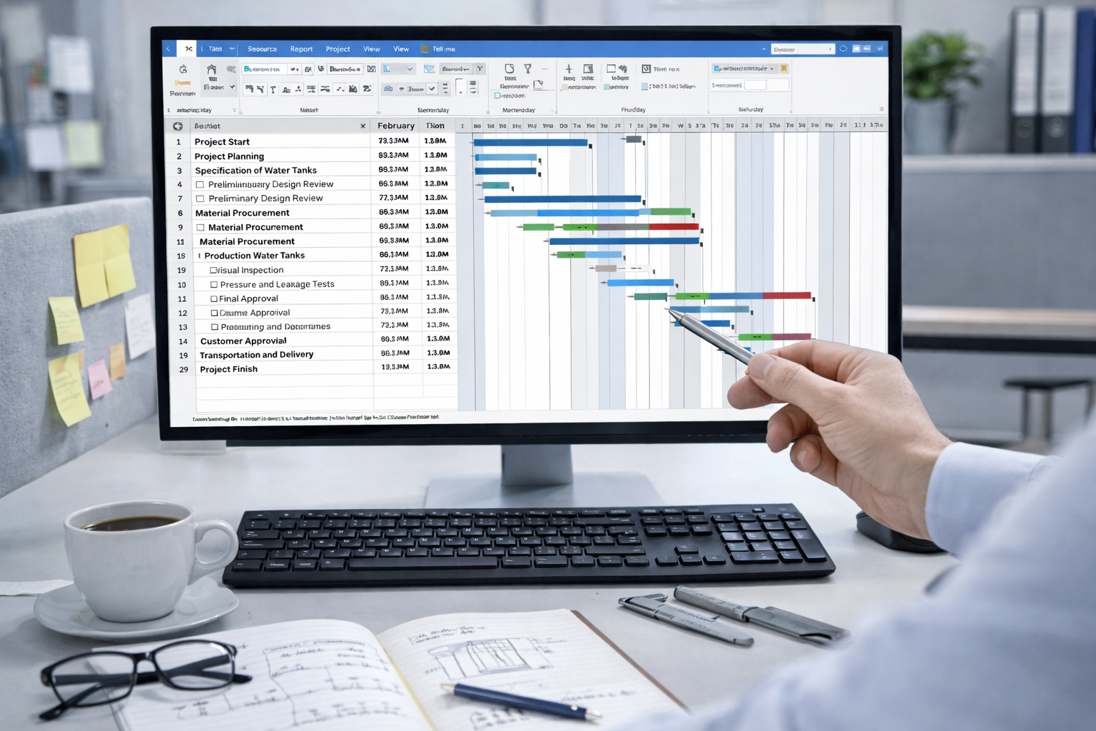 Strukturierte Planung von Terminen, Kosten, Ressourcen und Meilensteinen.